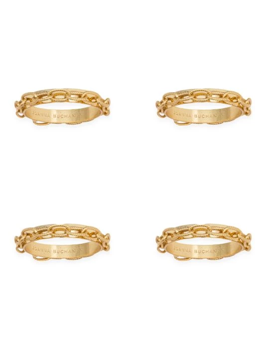 A textured rope chain embellishes these glamorous goldtone napkin rings.