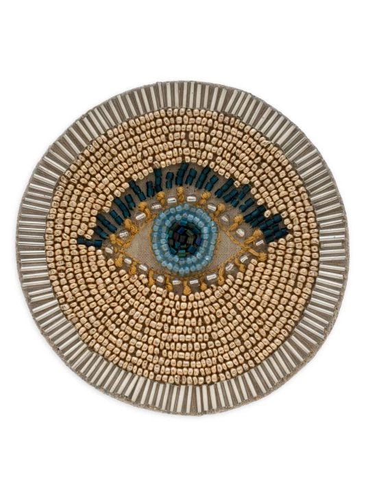 Beaded by hand, this playful coaster set features an intricate evil eye motif.