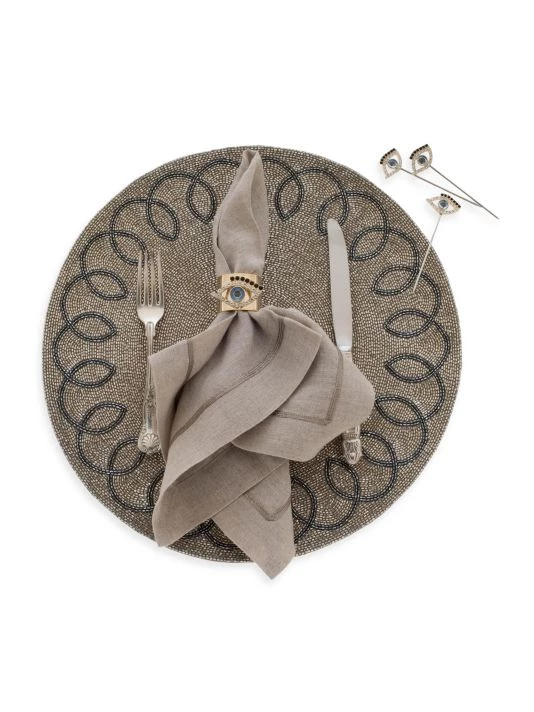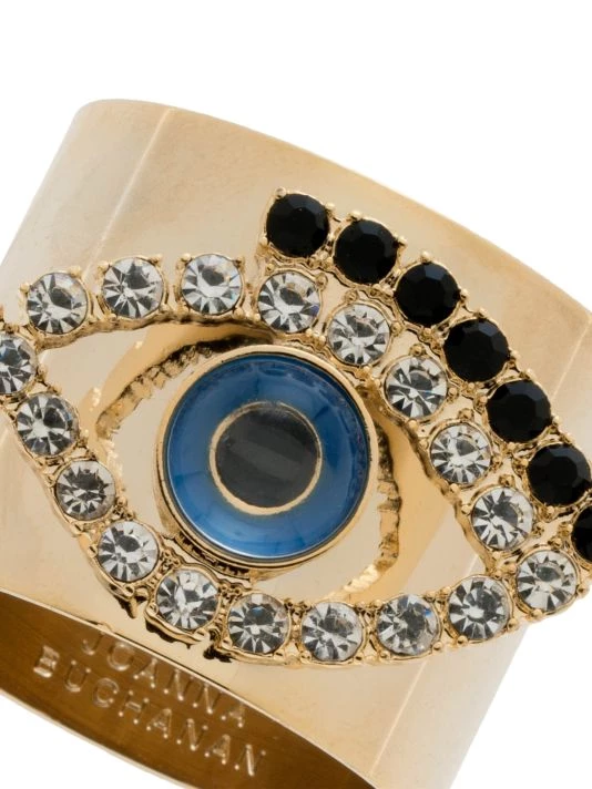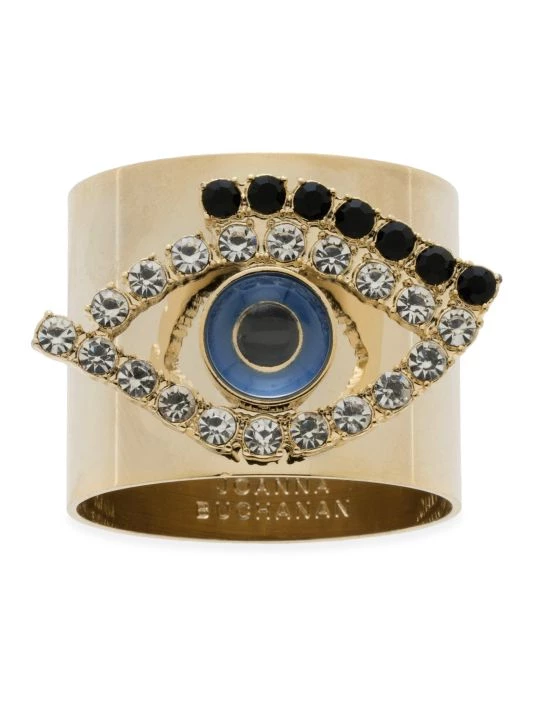 Featuring a shiny goldtone band, these napkin rings are topped with a crystal-encrusted evil eye adornment.