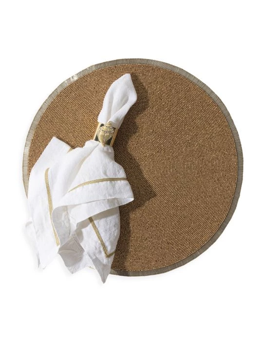 From the Gold Placemat collection. Side-stacked beading frames this handcrafted placemat with a cotton backing. Note: Due to its hand-beaded design slight imperfections maybe occur.