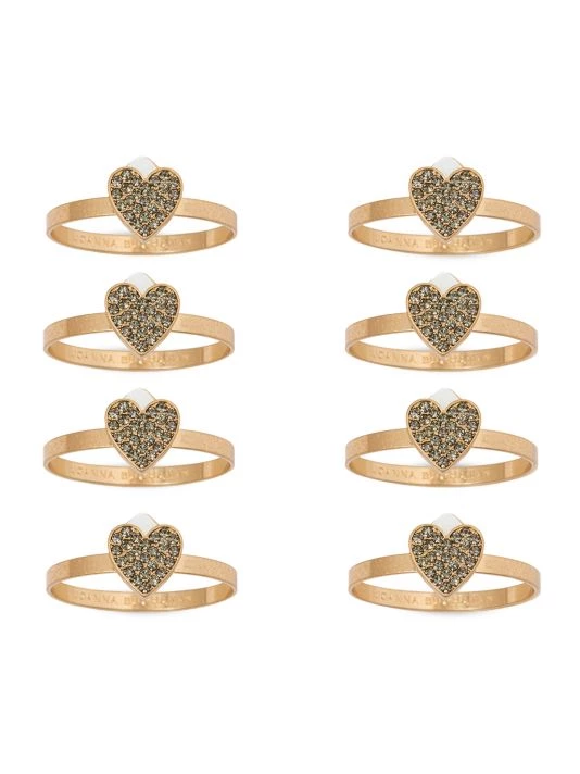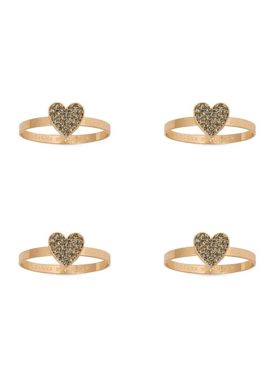 A rhinestone-studded heart lends sweet romance to this brushed goldtone napkin ring set.