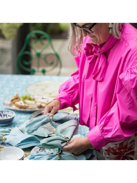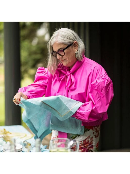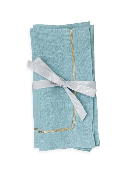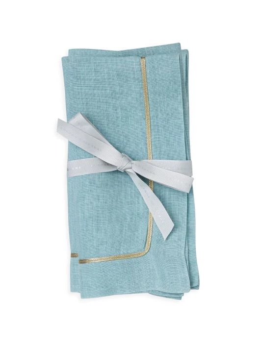 Versatile and casual, these all-occasion linen dinner napkins are finished with a simple metallic trim.