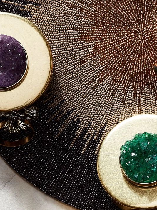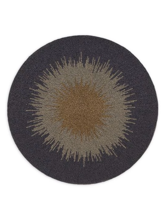 A sophisticated take on the simple placemat, the ombré effect is achieved through meticulous hand-beading by artisans in India.