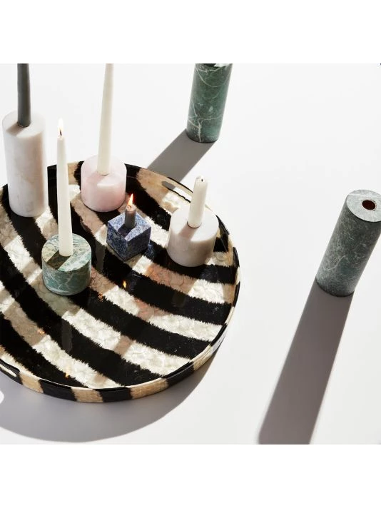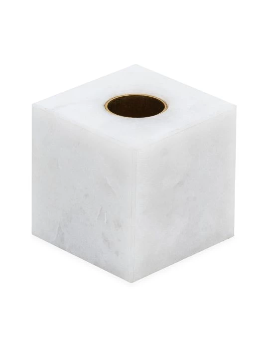 Contrasting beautiful organic quarts with a rigid shape, this candlestick cube stands beautifully on its own or clustered together with others.