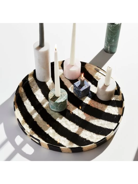 Cylindrical and sturdy, this candlestick pedestal is crafted of organic quartz stone and looks elegant on its own or clustered in a group.
