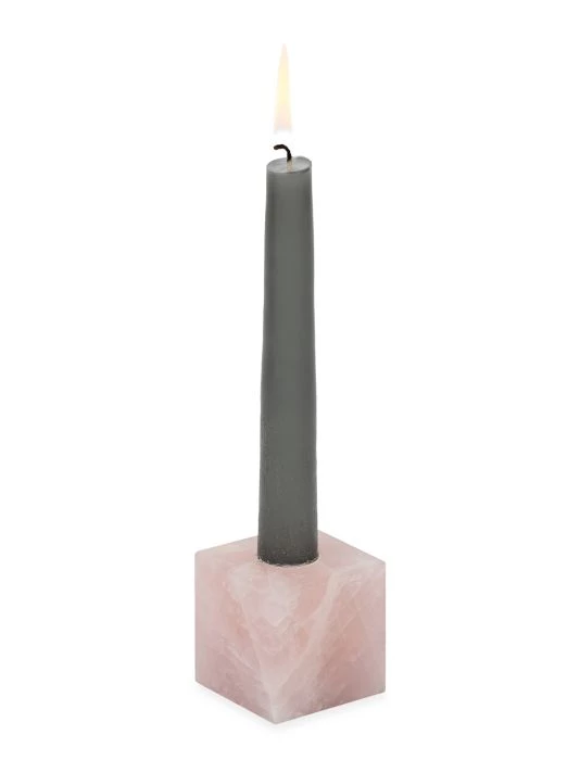 Crafted from rose quartz, this heavyweight candlestick has a geometric, solid cube shape with an elegant look.