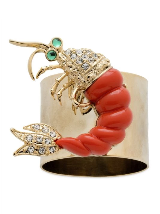 A perfect addition to a summer barware collection, these brass napkin rings are adorned with vibrant jeweled crustaceans.