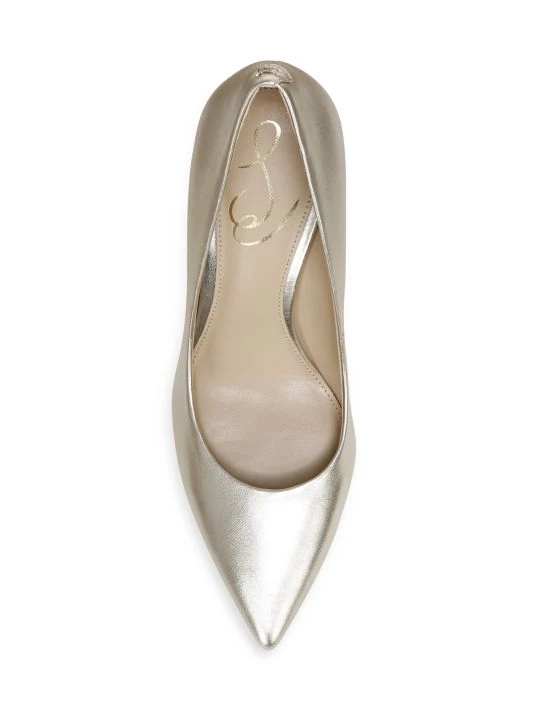 Enhanced with an elegant pointed toe, Sam Edelman’s Hazel pumps are crafted of eye-catching metallic leather adorned with a logo charm at the counter. This pair is anchored by a sleek stiletto heel.