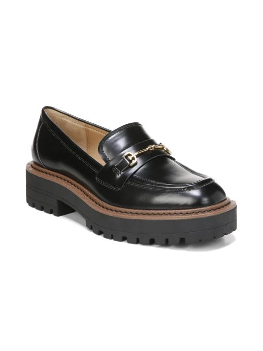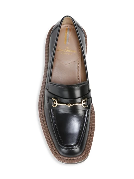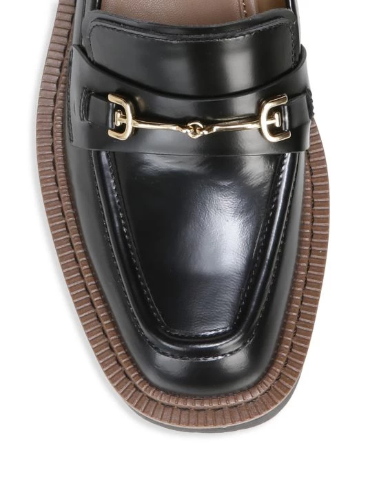 Vintage -inspired leather loafers flaunts horsebit buckle at vamp strap, mounted on a chunky rubber sole.