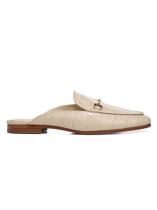 Adorned with a horsebit buckle, Sam Edelman’s Linnie mules are dressed in crocodile embossed leather. This classic pair is enhanced with a slightly pointed round toe.
