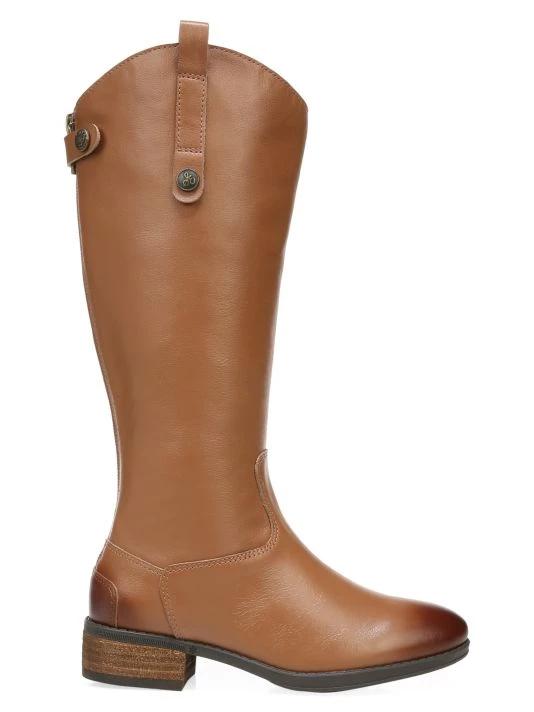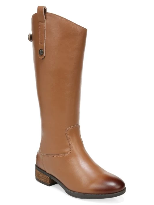 These tall riding-style leather boots feature buckle straps and ombré detail at the toe.