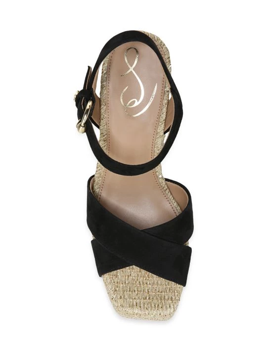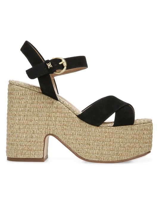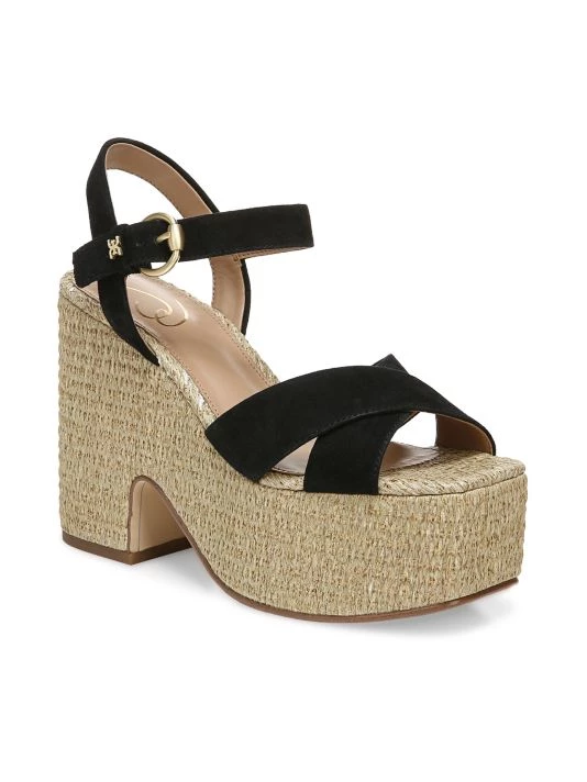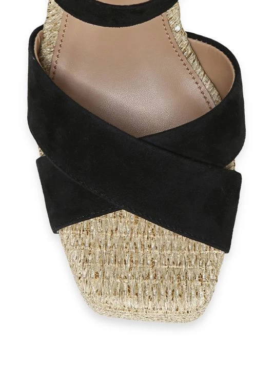Designed with a `70s look and feel, these woven platform sandals feature soft nubuck straps.