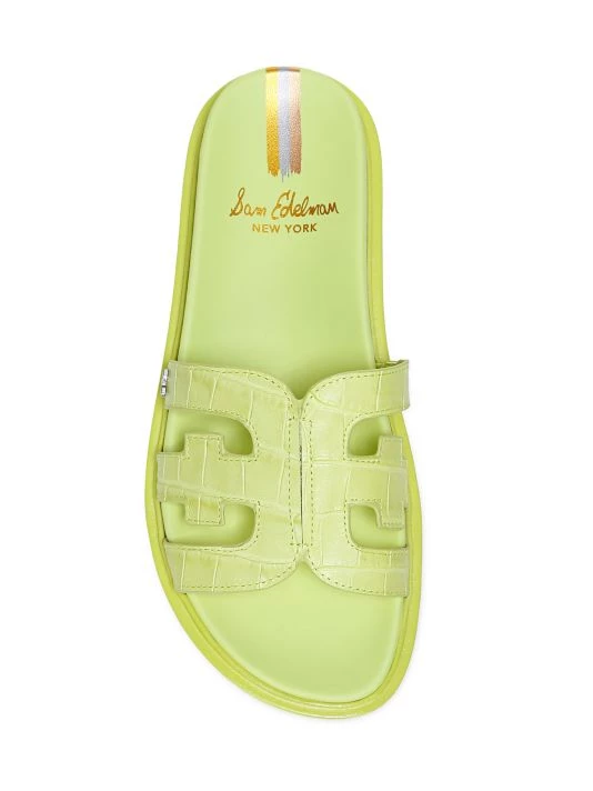 A cut-out embossed leather strap tops these versatile slide sandals.